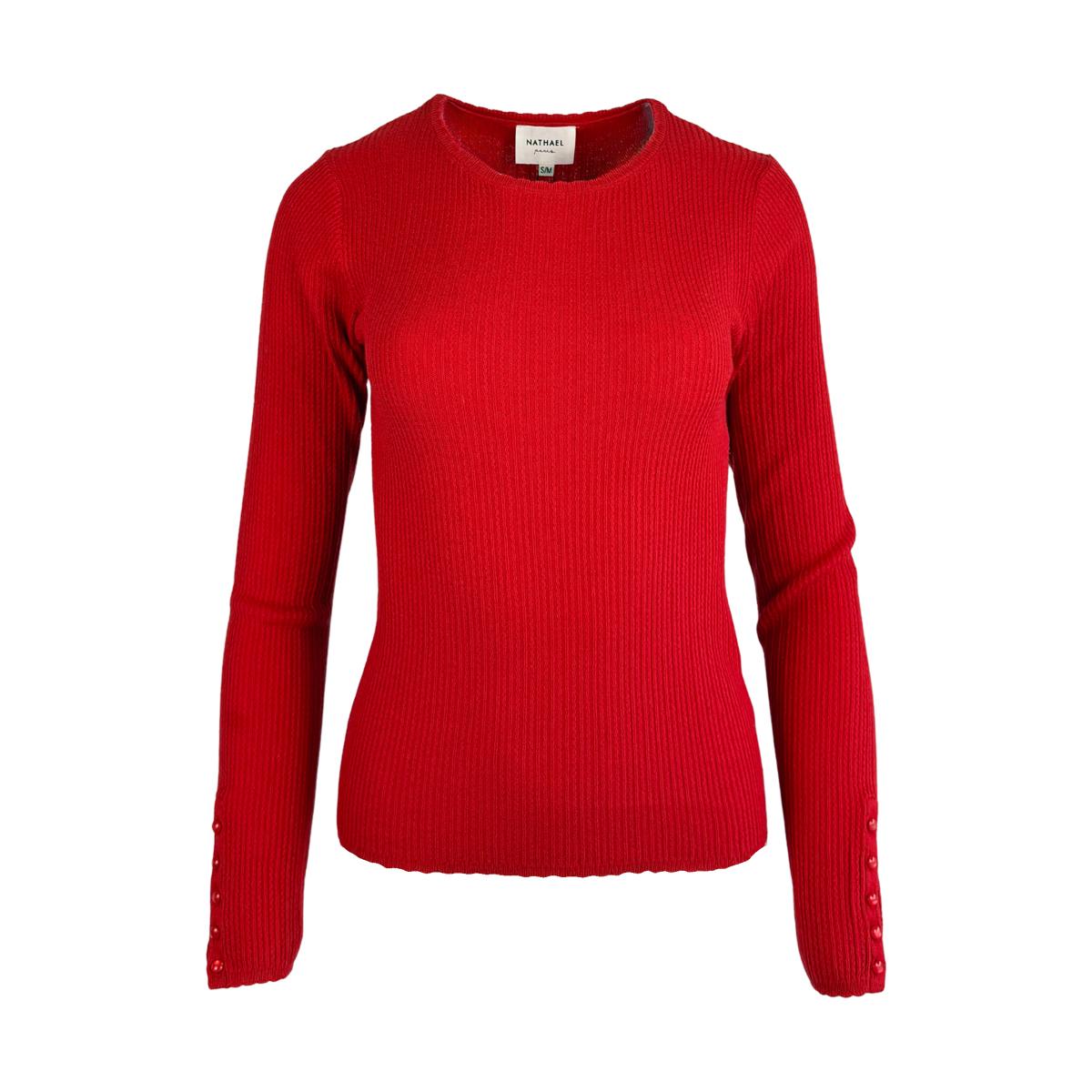Ein zeitloser Pullover mit femininer Silhouette, rundem Halsausschnitt und dekorativen Knöpfen am Ärmel. Gefertigt aus einer hochwertigen Materialmischung (60 % Baumwolle, 12 % Wolle, 28 % Polyamid) überzeugt er durch weichen Griff, angenehmen Tragekomfort und stilvolles Design.Vielseitig kombinierbar – ein Klassiker für elegante Alltags- und Business-Looks.