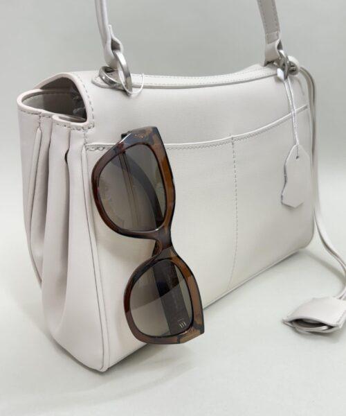 Mittelgroße Ledertasche in gebrochenem Weiß