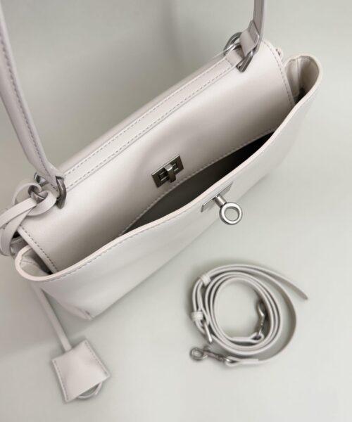 Mittelgroße Ledertasche in gebrochenem Weiß mit silbernen Details